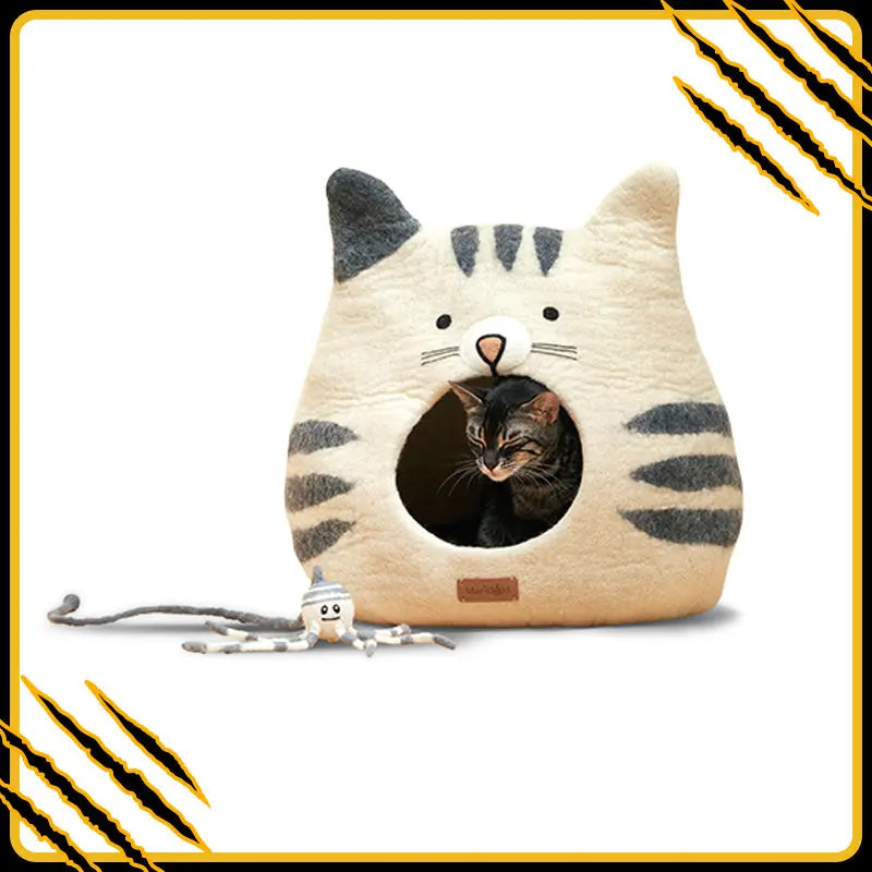 Grotte et maison decoration pour chat yeti en feutre de laine – abri et panier douillet