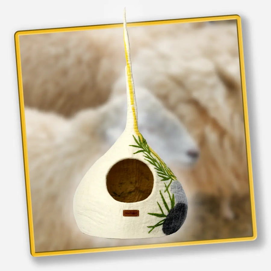 Nos compagnons félins sont de véritables experts en matière de sommeil et connaissent instinctivement le secret d'une sieste parfaite. C'est pourquoi chaque grotte en feutre ou maison en laine MariGold est conçue avec de la laine de mouton naturelle, matériau aux propriétés exceptionnelles pour le repos. Cette fibre précieuse, douce et thermorégulatrice, crée un microclimat idéal : elle conserve une température constante qui favorise l'endormissement et maintient votre chat dans un sommeil profond et réparateur.