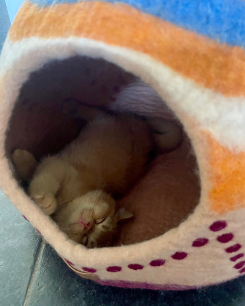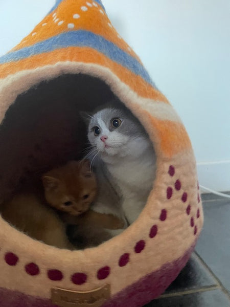 Nos compagnons à quatre pattes ont besoin de calme autant que de jeu. Avec nos grottes en feutre et maisons artisanales en laine, vous offrez à votre félin un abri douillet où il peut se reposer en toute sérénité. Chaque création MARIGOLD transforme l'espace de repos de votre chat en véritable refuge sécurisé, alliant harmonieusement confort, bien-être et esthétisme raffiné.